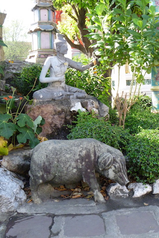 Wat Pho is one of the oldest and largest in Bangkok. Its primarily known for having one of the largest single Buddha images, he is reclining and is apparently 15m high and 43m long.