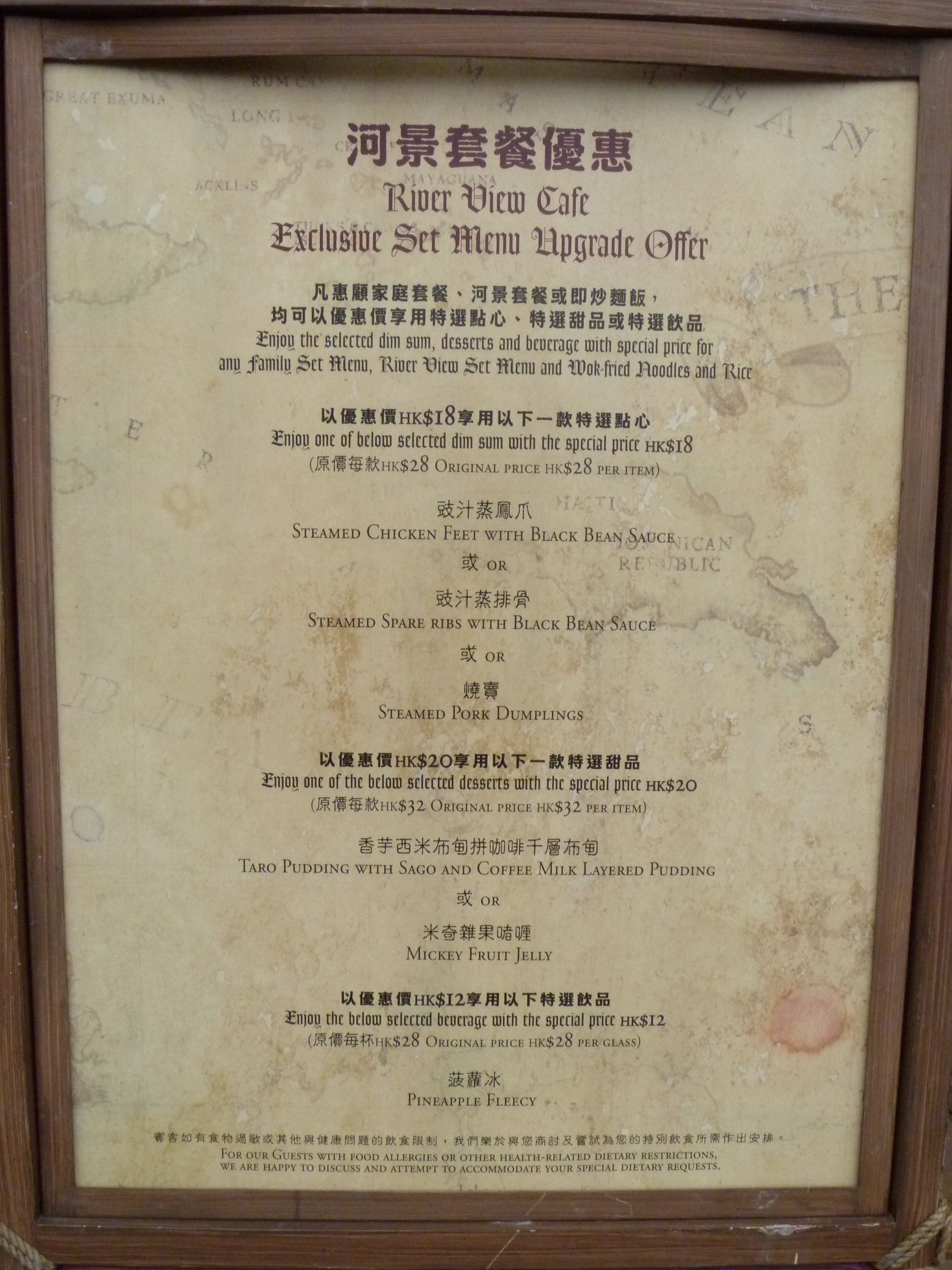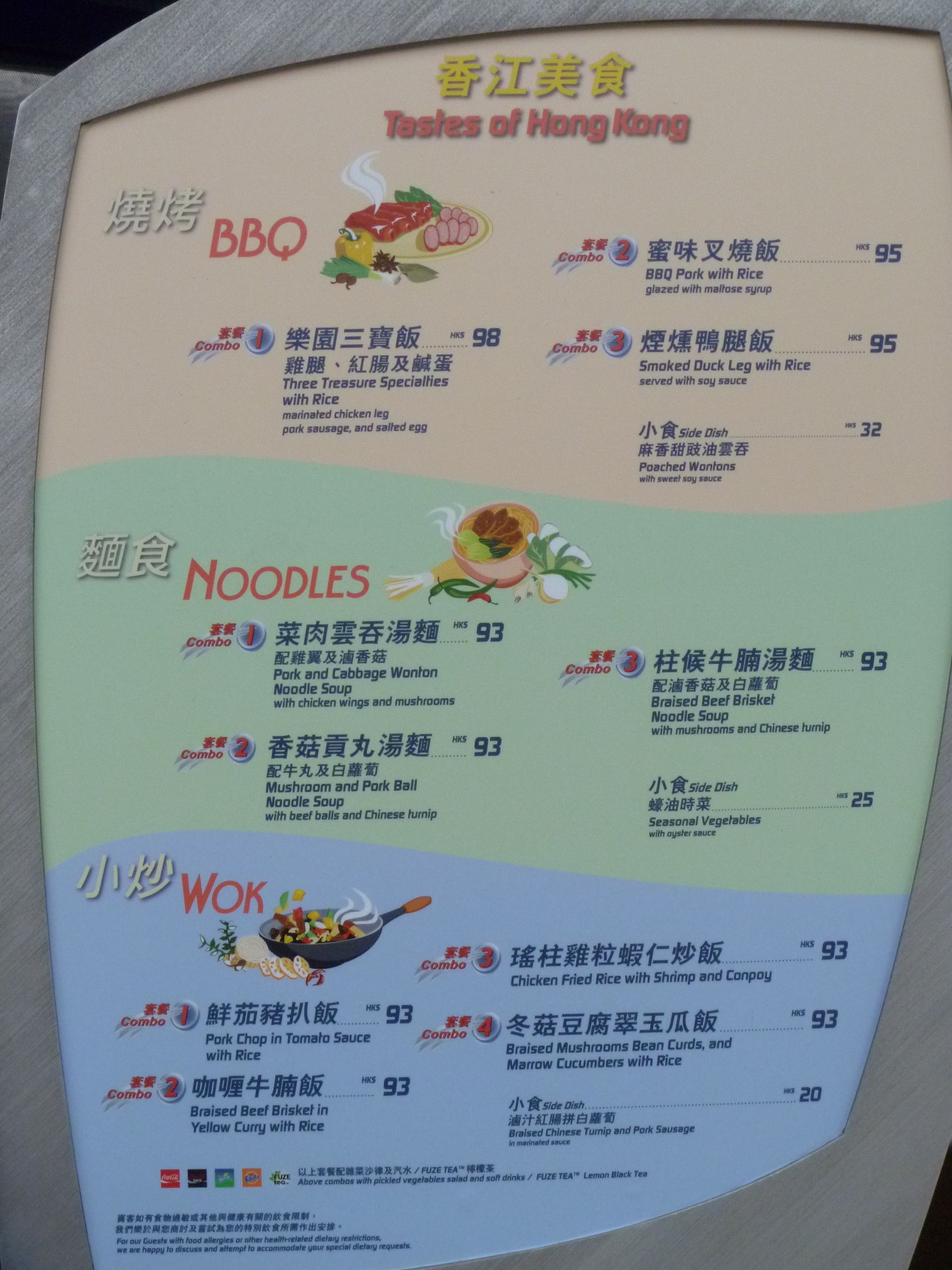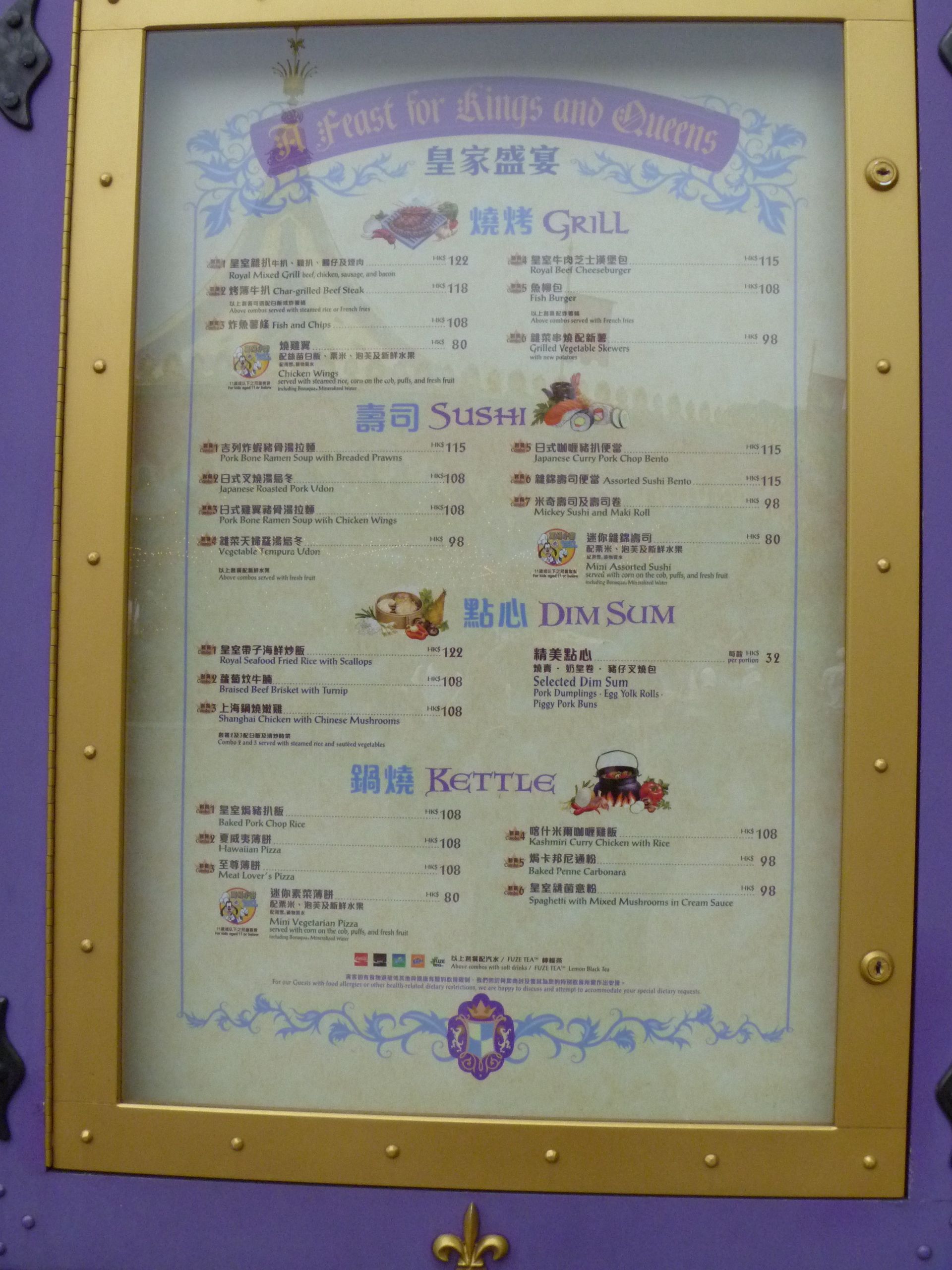 Menus at Hong Kong Disneyland