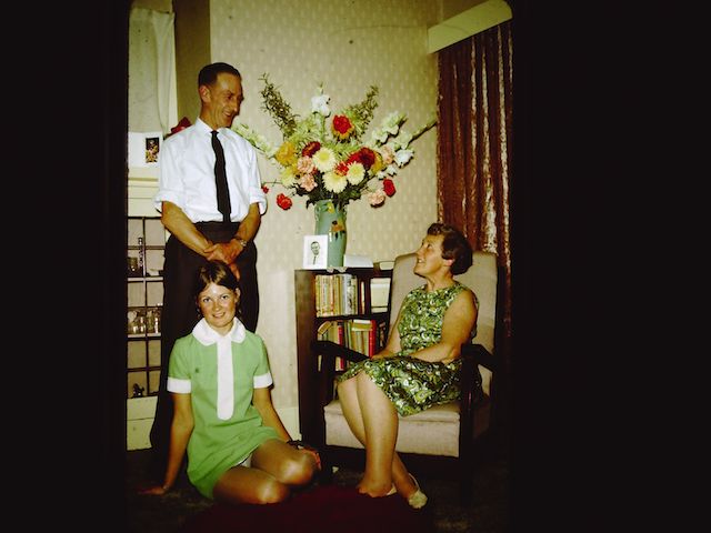 Get a load of that wallpaper! Finally identified the mystery woman as my Dad’s cousin – no idea who the man is to her left though. Grandad and my Dad to the right and me in the far left.