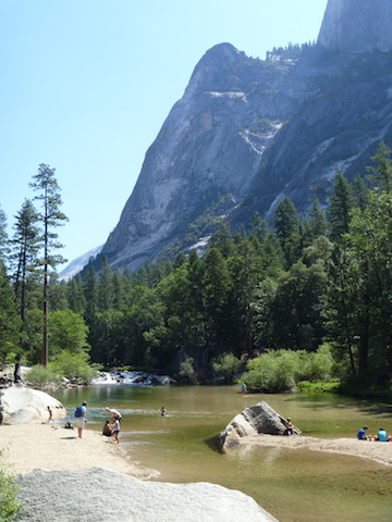 We did a handful of short walks on fairly flat terrain. The area of Yosemite village is on the valley floor and is spectacular, surrounded by mountains including the famous Half Dome. There are buses that run around the main village area to the main shops, visitors centre and to the starts of the different walking tracks.