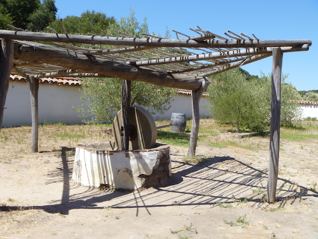 From Wikipedia “Ten of the original buildings are fully restored and furnished, including the church, shops, quarters, and blacksmith shop. The mission gardens and livestock represent what would have been found at the mission during the 1820s.