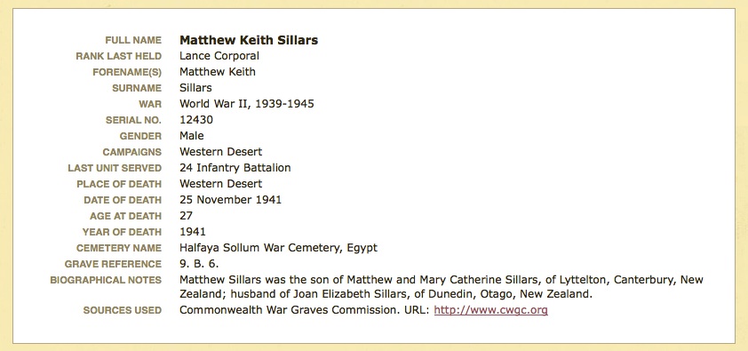 Keith Sillars war grave at Halfaya Sollum War Cemetery (Egypt)