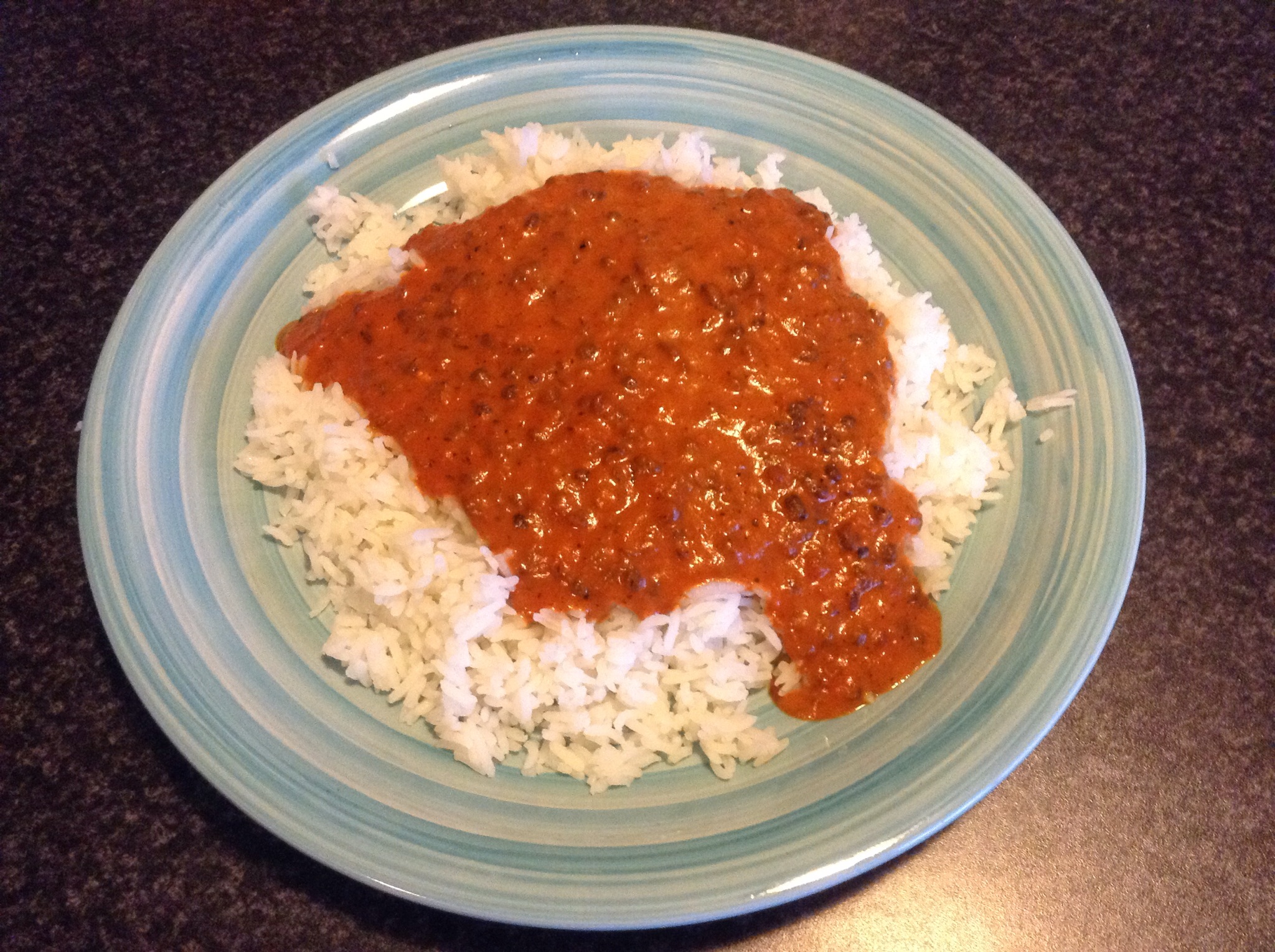 It was very mild, not a hint of heat at all. If you are new to Indian cuisine, it would be a good choice. The dhal was cooked well. I would order it again… But right now I couldn’t eat another bite.