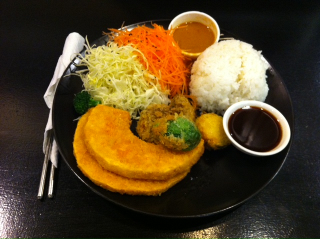 They had a number of vegetarian (and probably vegan) items. I choose the Satay Vegetables. Not a dish I usually associate with Japanese cuisine. I grabbed a table and waited for my meal. It took maybe 5 minutes to arrive and it was piping hot – fresh out the kitchen. I actually had to wait a couple of minutes for it to cool before starting.