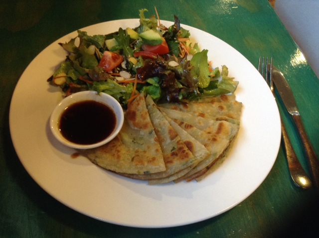 The meal looked beautiful! The salad was delicious – fresh and the dressing wasn’t too heavy. The pancakes were crispy and went beautifully into the soy based sauce.