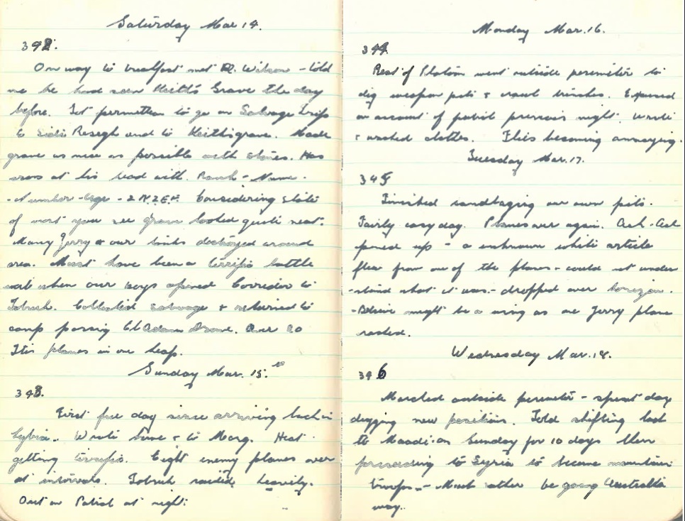 […] Click here for diary entry for Saturday March 14th – Wednesday March 18th 1942 […]