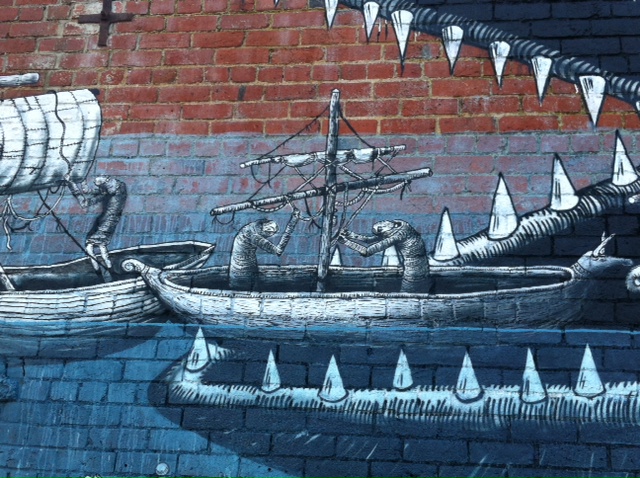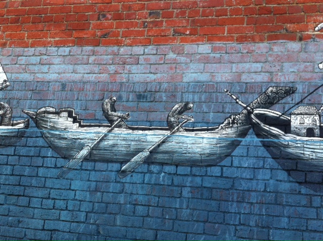Dunedin Street Art by Phlegm – Fish and Boats