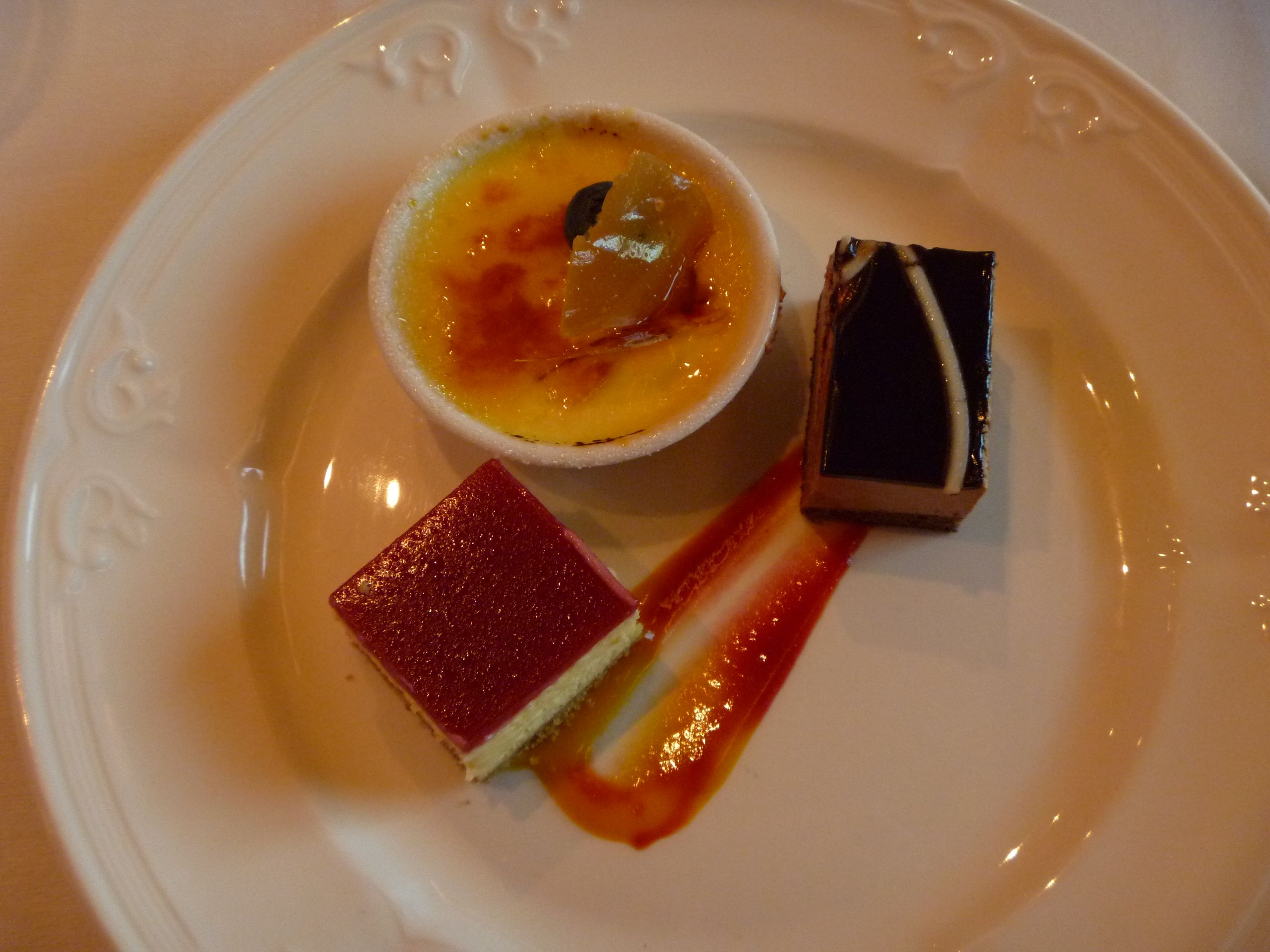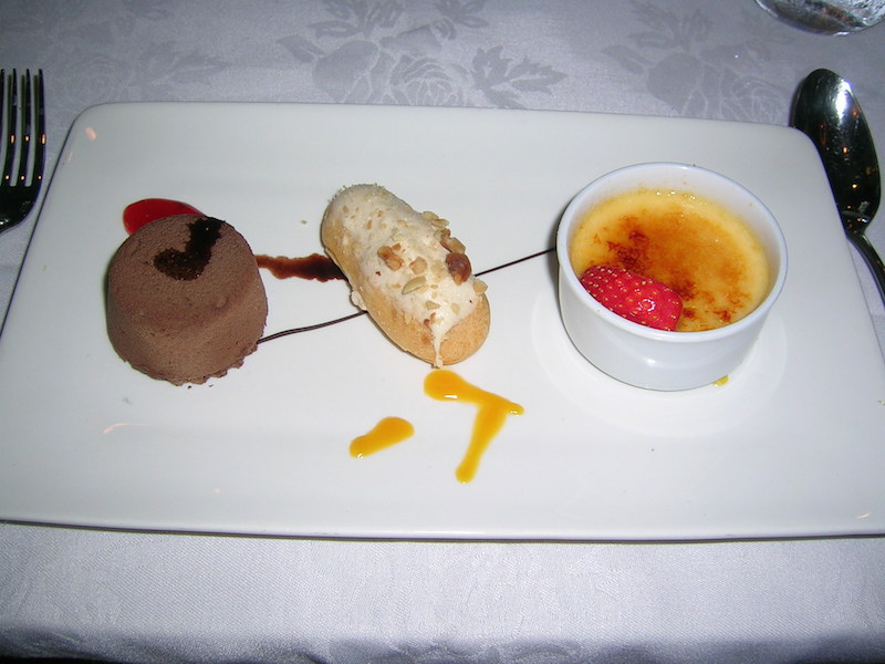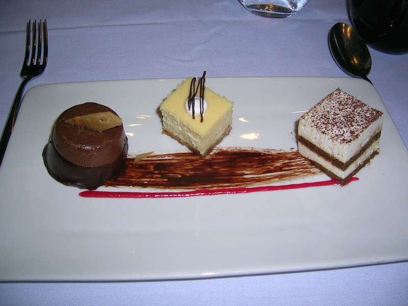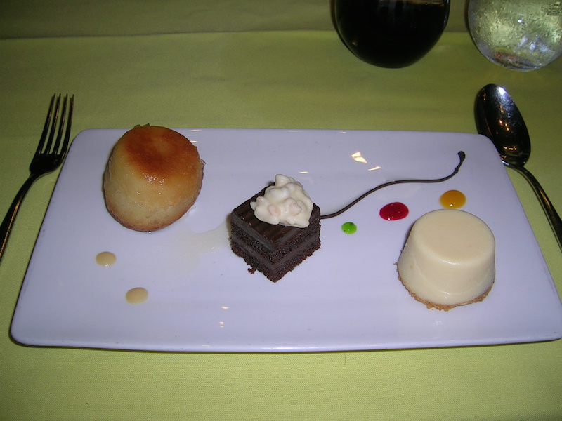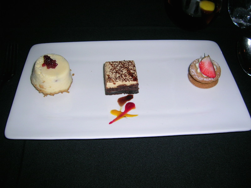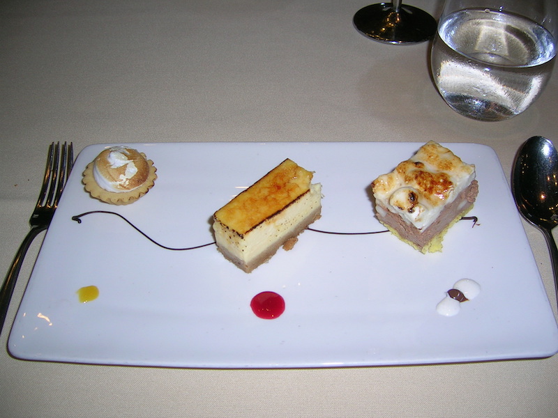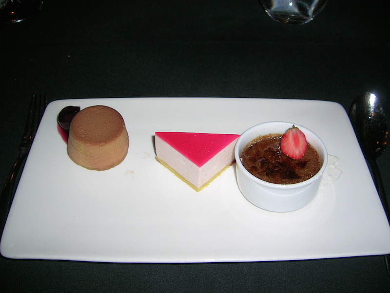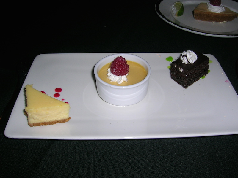 • A trio of Peanut Butter Mousse, Mango Cheesecake, and Tahitian Vanilla Crème Brûlée