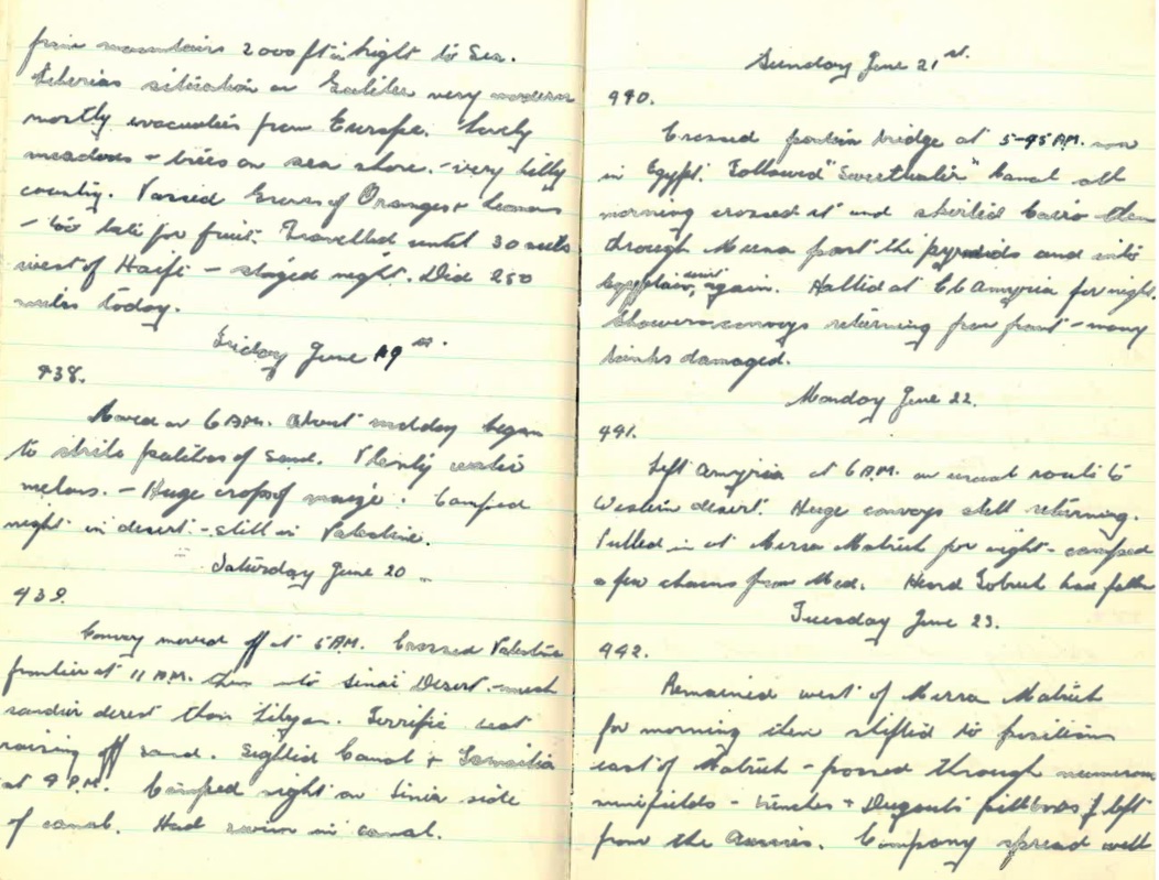 Grandad’s WWII Diary – Thursday 18th June (cont) – Tuesday 23rd June 1942