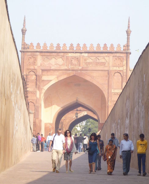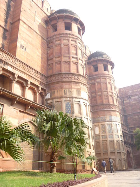 The Red Fort of Agra is known by many names, the Red Fort, Agra Fort, Lal Qila, Fort Rouge and Red Fort of Agra.  It’s only a short distance from the Taj Mahal so you can easily see both in the same day – its only about 3 kms away and on a clear day you can see the Taj Mahal in the distance from the upper parts.