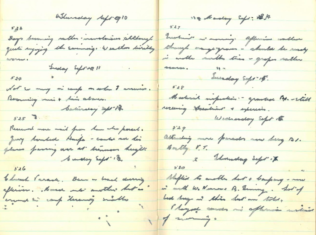 Grandad’s WWII Diary – Thursday 10th September – Thursday 17th September 1942