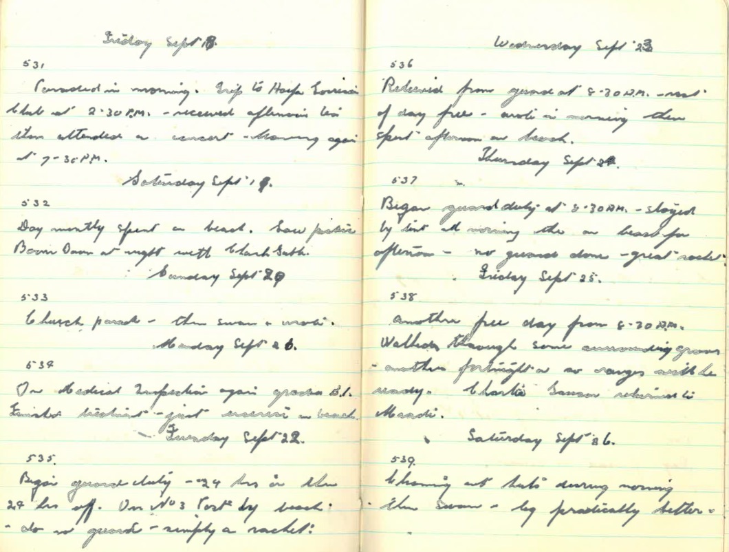 Grandad’s WWII Diary – Friday 18th September – Saturday 26th September 1942