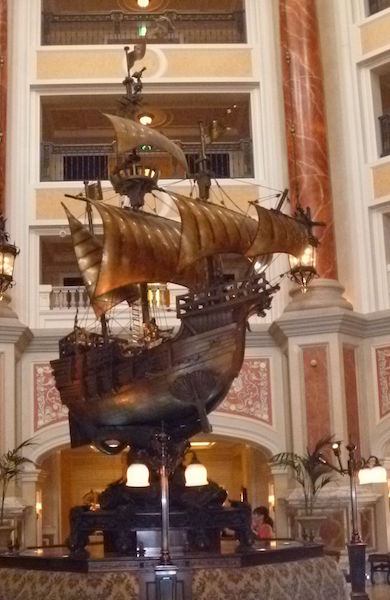 Tokyo DisneySea Hotel MiraCosta is located partially within the incredible Tokyo DisneySea theme park and has an Italian theme to it. Areas of the hotel are themed to an Italian Mediterranean sea port. It overlooks the Mediterranean Harbour section of the park.