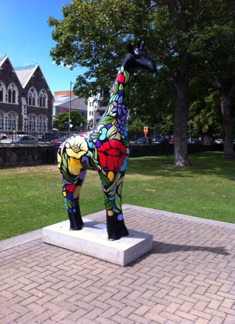 Perhaps I should explain… you maybe familiar with the Rhino or Cow colourful art installations that have appeared in cities around the world?  Here in Christchurch this summer we have a similar setup with over 100 colourful giraffe scattered about the city.  With the wonders of modern technology, you can download an app on your iPhone (or even on an inferior Android 😉 ) and “capture” the giraffe when you get within a few metres of them.