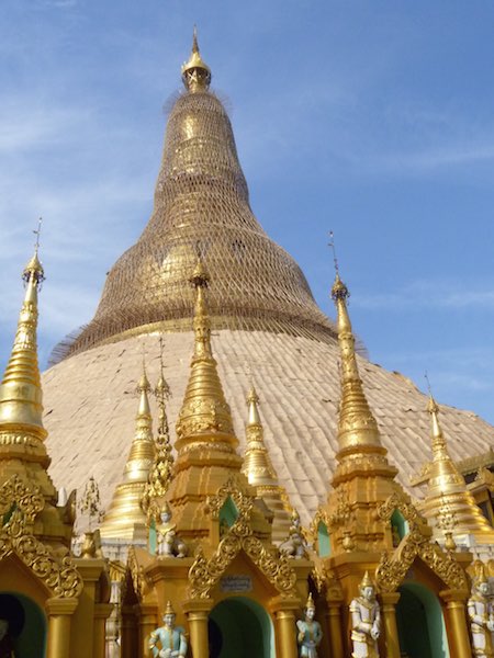 The most holy place in Myanmar is the Shwedagon Pagoda in Yangon. We got to see it in all its magnificent, scaffolded glory when we visited. During the cool season, they refresh the gold plate to keep it in tiptop shape. It was still an amazing site to visit through and as its a very large temple complex, there are plenty of areas to explore, stop and contemplate or dare I say, people watch.