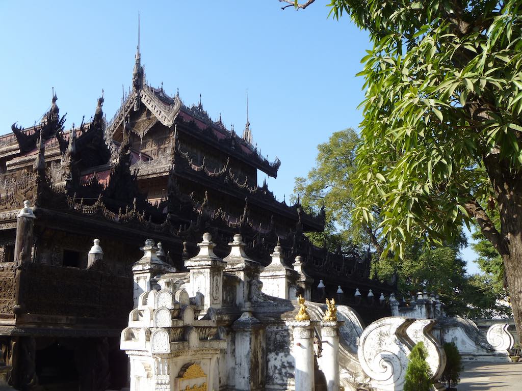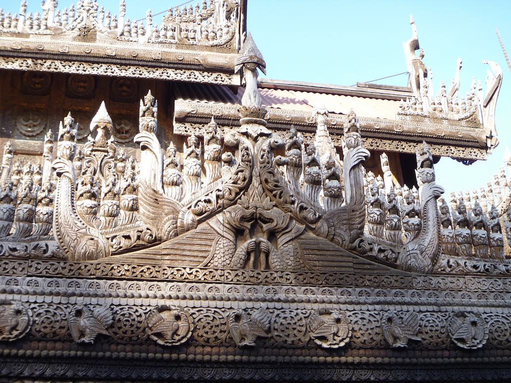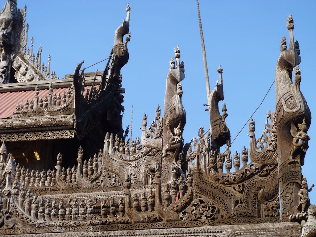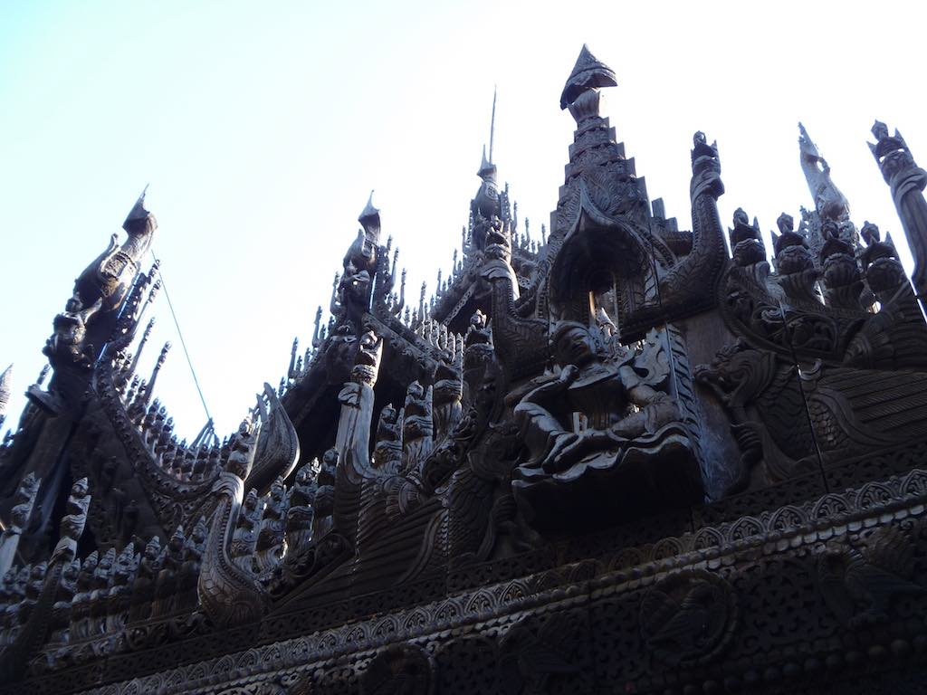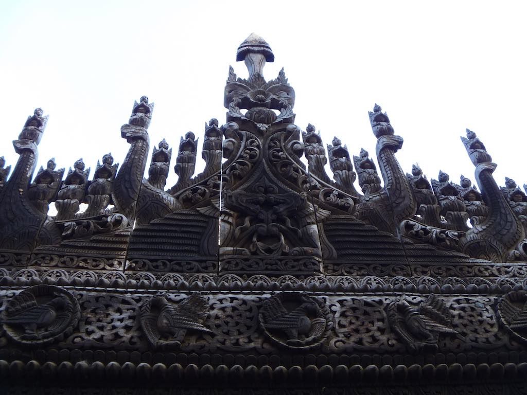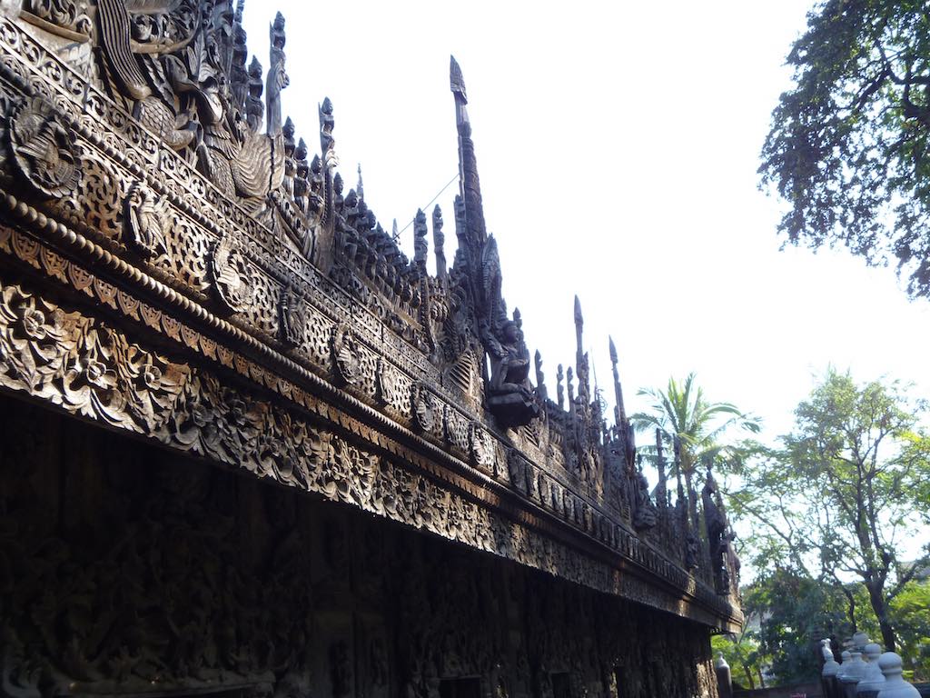 Near Mandalay Hill is the historic, wooden Shwenandaw Monastery. Built in traditional Myanmar style, how this old wooden building has survived to this day, I can’t fathom. The intricate and delicate carvings were astonishing, but the old wood just gave the impression that a carelessly lit cigarette would send the whole lot up in flames in 2 seconds flat.