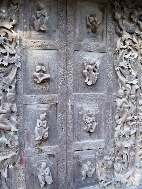 The carvings depict dancers, mythical creatures and flowers. Each and every one of them seemed to be different. Originally this whole building would have been covered in gold leaf but now only the inside remains a such. Its also very dimly lit inside and we found it tricky taking photos with our camera.