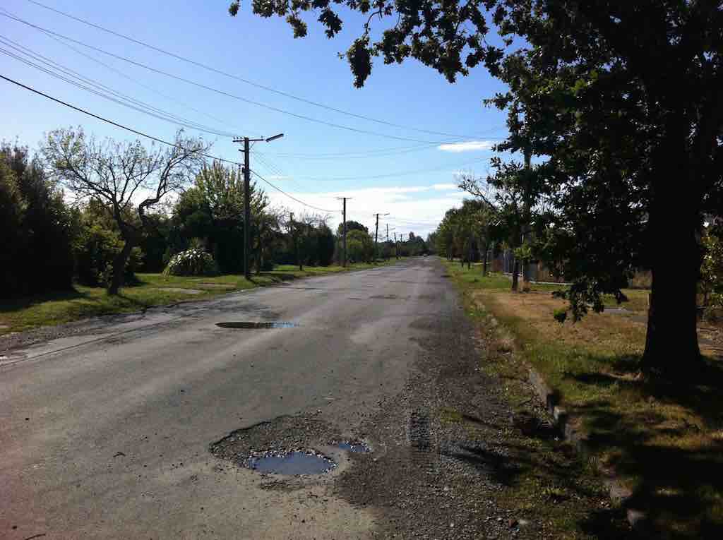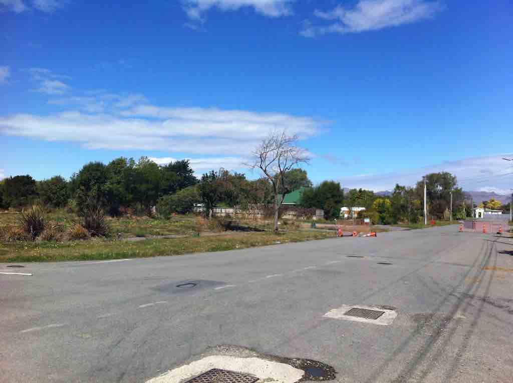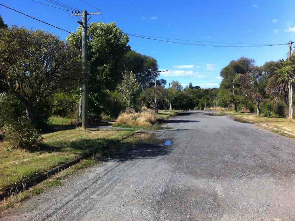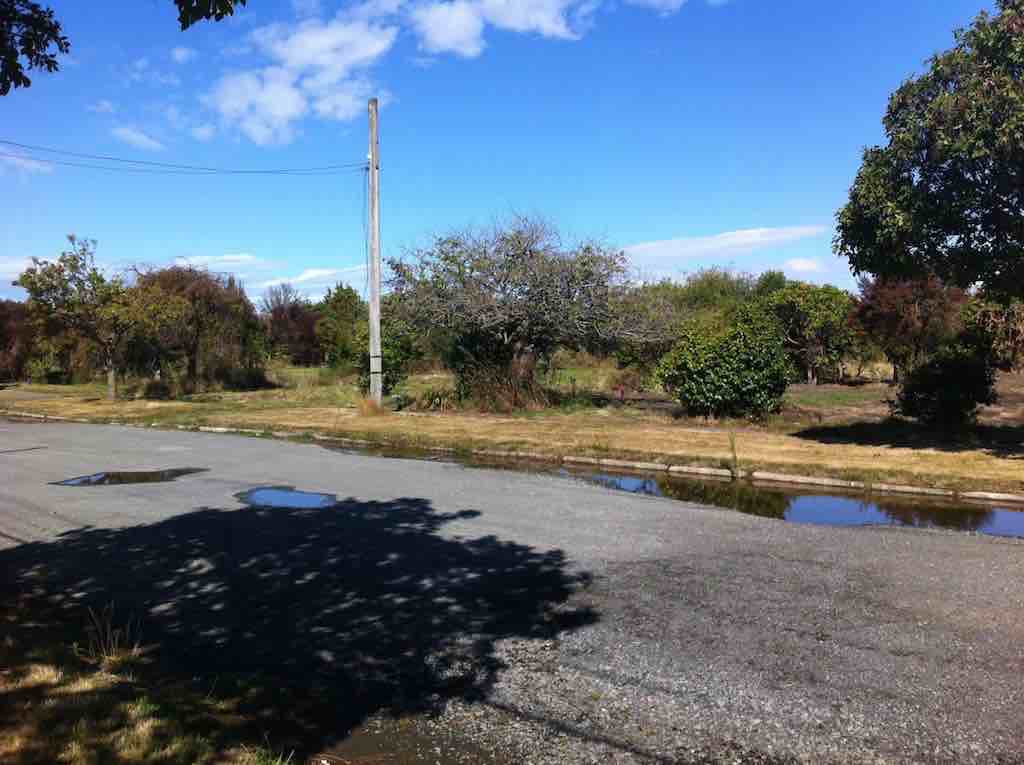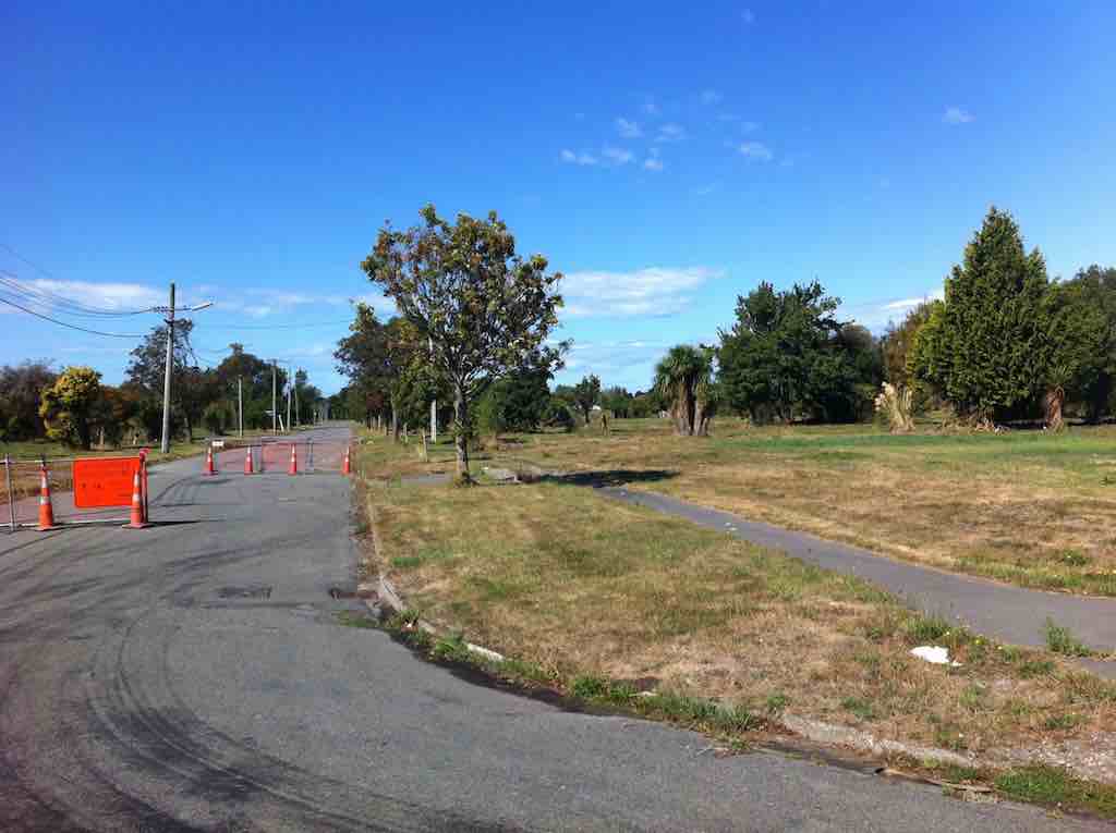 Burwood Park is your standard park, nice grassy areas, big trees and children’s play areas -surrounded by homes.  As soon as you leave the park into the red zone you enter a  world reminiscent of something you’d see in The Walking Dead with the odd remaining house is boarded up and signs of humans settlers who have long since moved on.  Roads and foot paths still in tact but in disrepair.  Street signs marking streets that have no homes left, the odd strangely left behind item such as a wheelbarrow, trolley or rubbish bin.