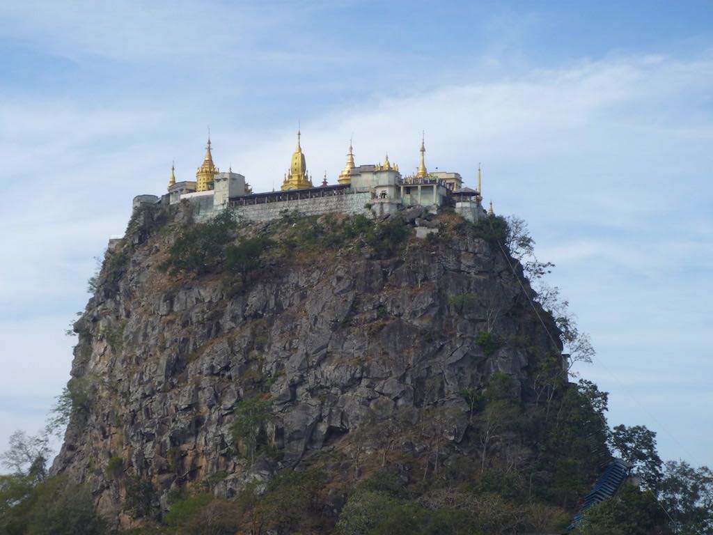 About 50kms from Bagan is Mount Popa. At the top of a flight of 777 stairs (no I didn’t count them) is a monastery at the summit of Taung Kalatt. This is a popular pilgrimage site as its considered the home of the most powerful Nats (spirits) and also has religious relics.
