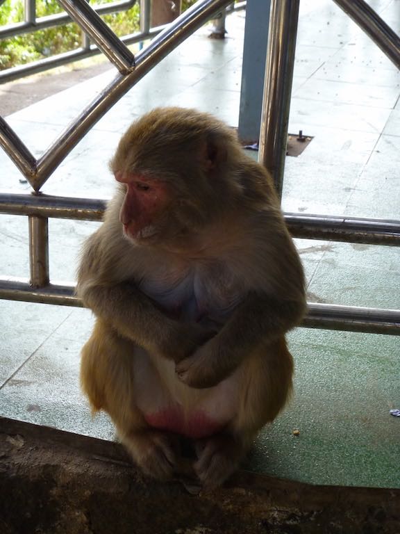 You need to give yourself at least 1-2 hours to climb up as it can get very crowded in parts. As it’s a religious site, you need to leave your shoes at the bottom. There are people selling peanuts and other legume type snacks so the stairs are covered with peanut shells and dried beans. Not to mention Macaque monkeys running around. I had one baby one use my shoulder to bounce off to his next location.