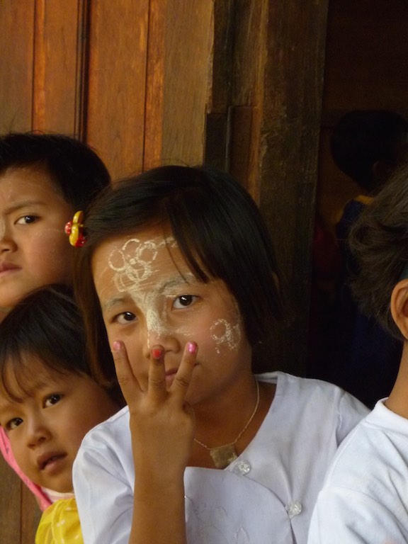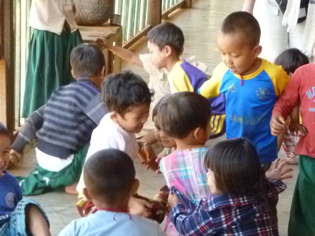 One of the things we did while visiting the area near Shwe Inn Tain was to visit a local school at a village.  The tour company we were travelling with supports the local school with donations and technology.  The school was a very basic setup.  Just 3 or 4 class rooms and the short visit by our group caused complete chaos 🙂