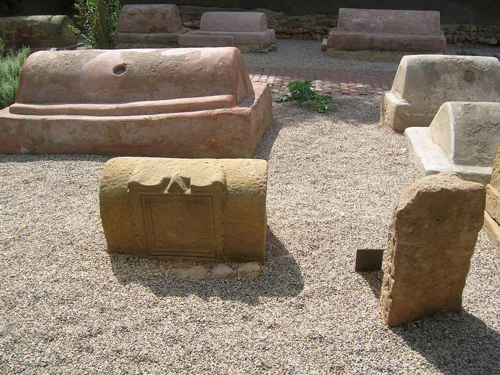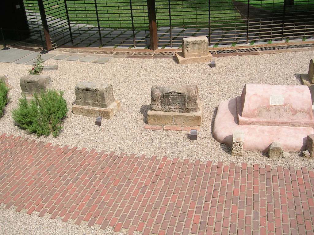The tombs or graves are along both sides of a roman road. They date from between the 1st & 3rd century and were outside of the Roman city walls. There is a raised walkway around the tombs that allows you to see the 80 or so different tomb stones.