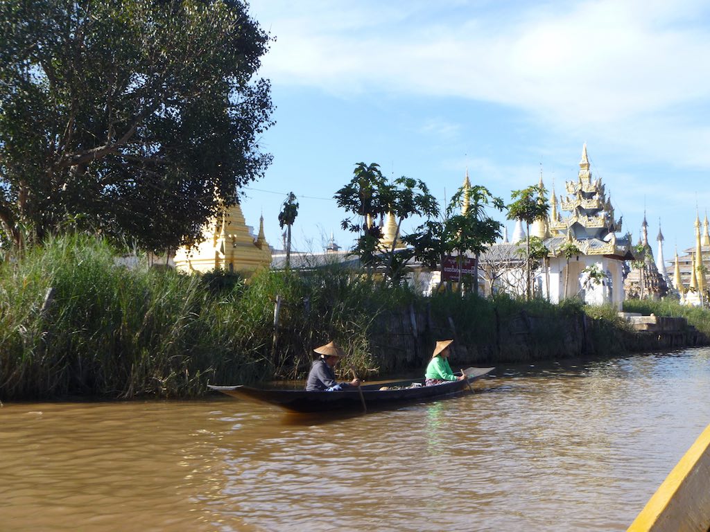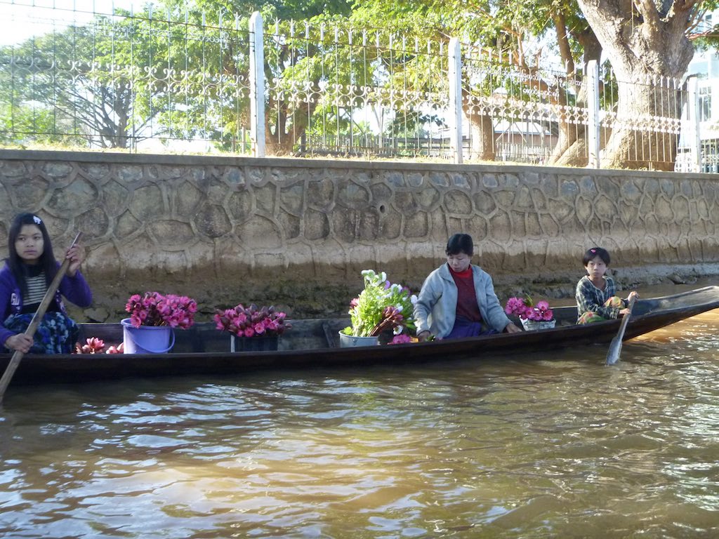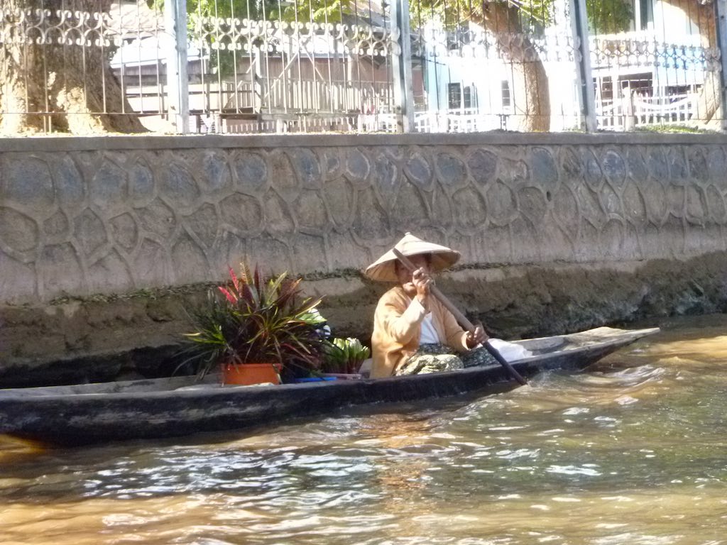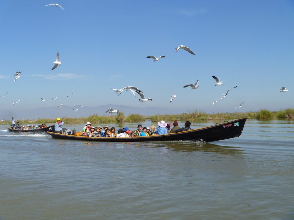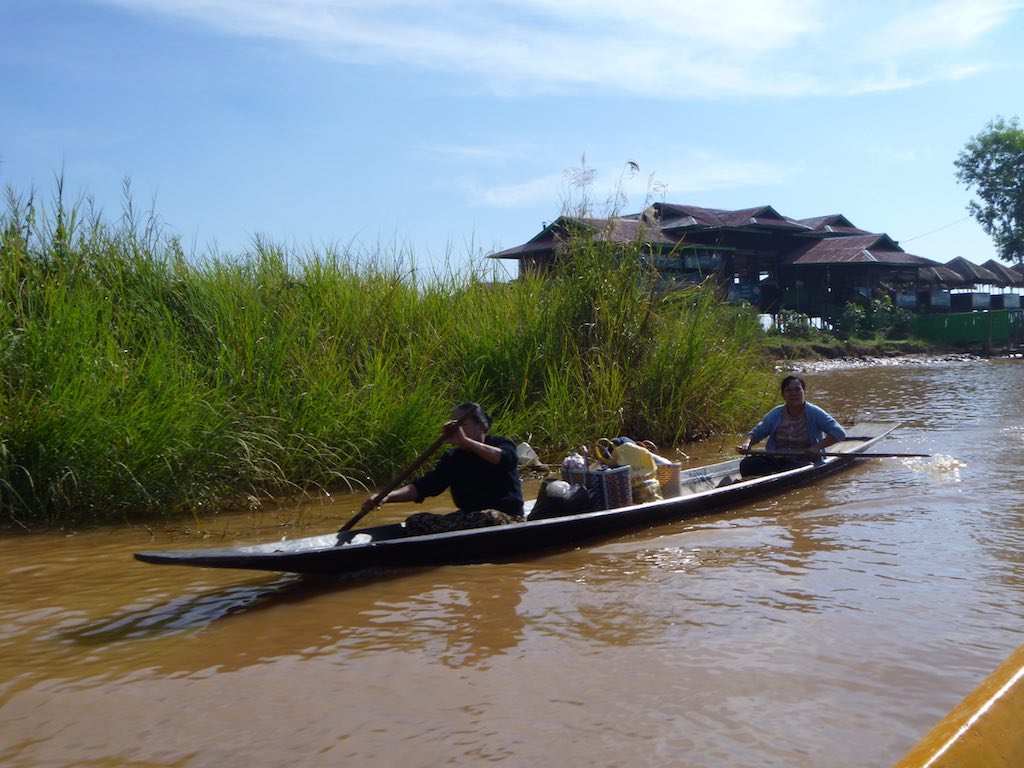 This series of photos highlight the Inle Lake people as they go about their day on the lake – the brightly coloured boats with seats are the tourist boats.