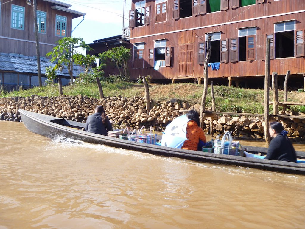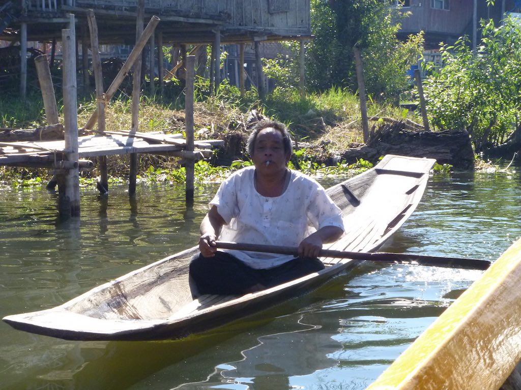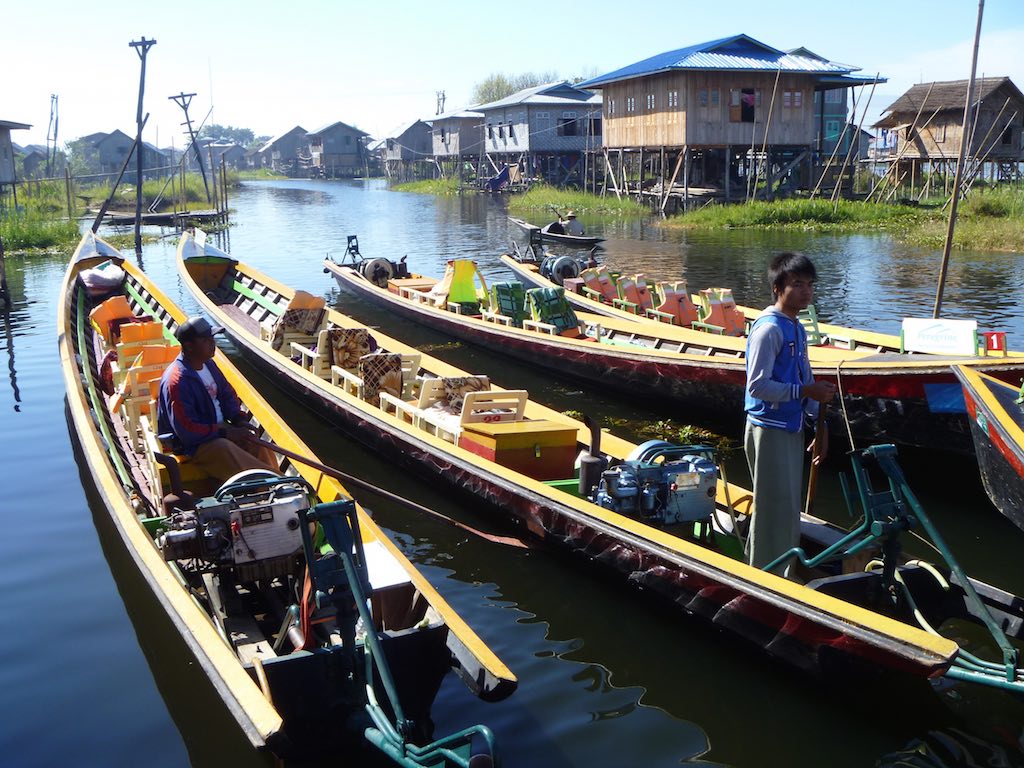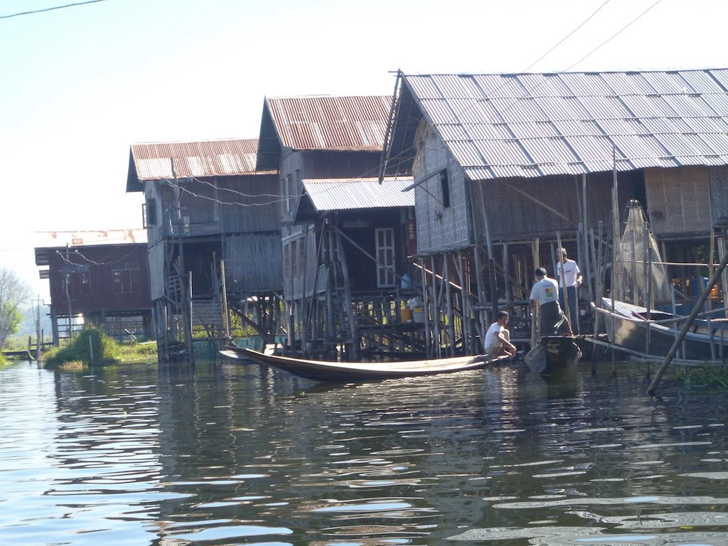 The people of Inle Lake live in mostly wooden homes resting on stilts. As they live in and on a lake, the primary mode of transport is these small wooden boats or canoes.