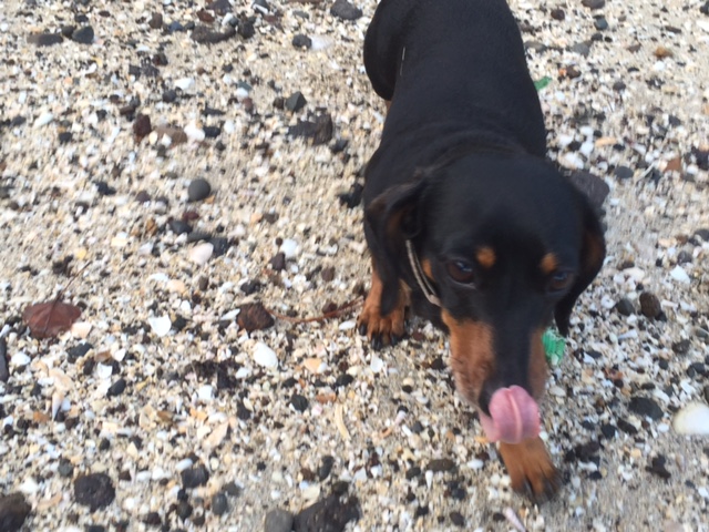 Next stop was Corsair Bay.  This has a couple of large car parks and is a much larger beach.  There is also a set of public toilets at this location.  The beach is sandy-ish with lots of  broken shells, the doglets didn’t like the feel of these on their feet.  They prefered the rockier Cass Bay.