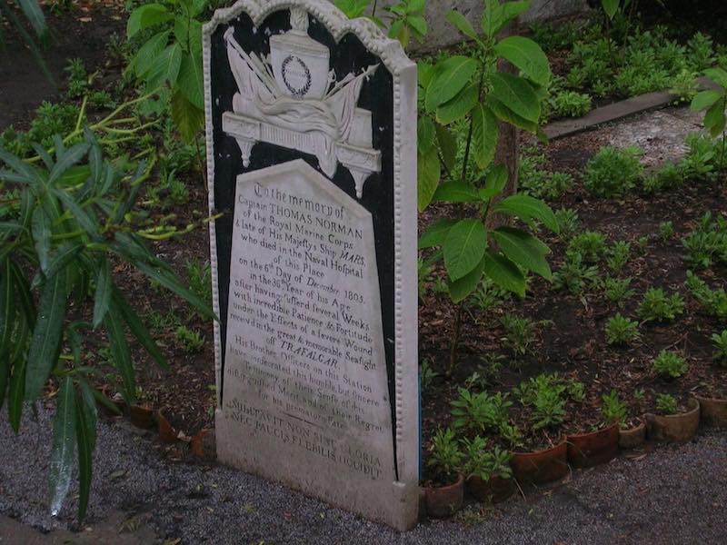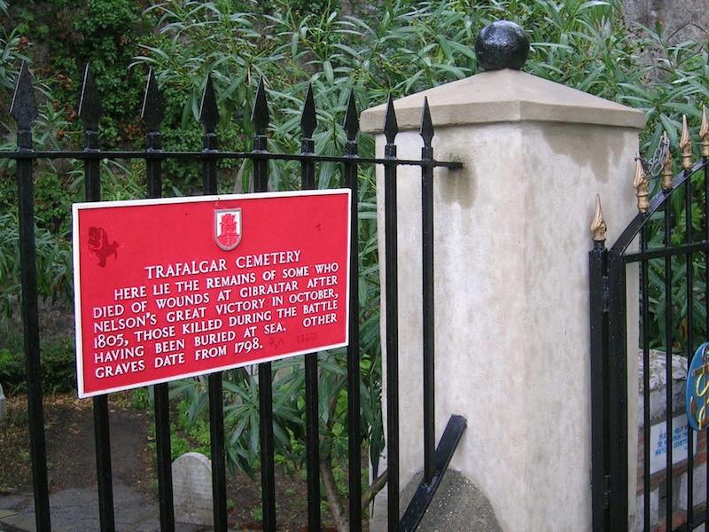 Near the South Bastion wall, is the Trafalgar Cemetery. Whilst the cemetery commemorates the Battle of Trafalgar (1805), the cemetery actually only has two burials of those that died from wounds received during the battle. Most who died in the conflict were buried at sea – being a sea battle and all and others that died of wounds in Gibraltar were buried in another location nearby.