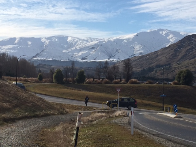Saturday, sunshine again and warmer too.  So I decided to take a walk before lunch around the Lake Hayes Estate, the suburb where I’m house sitting while I’m working here.  Look at the snow on those mountains!