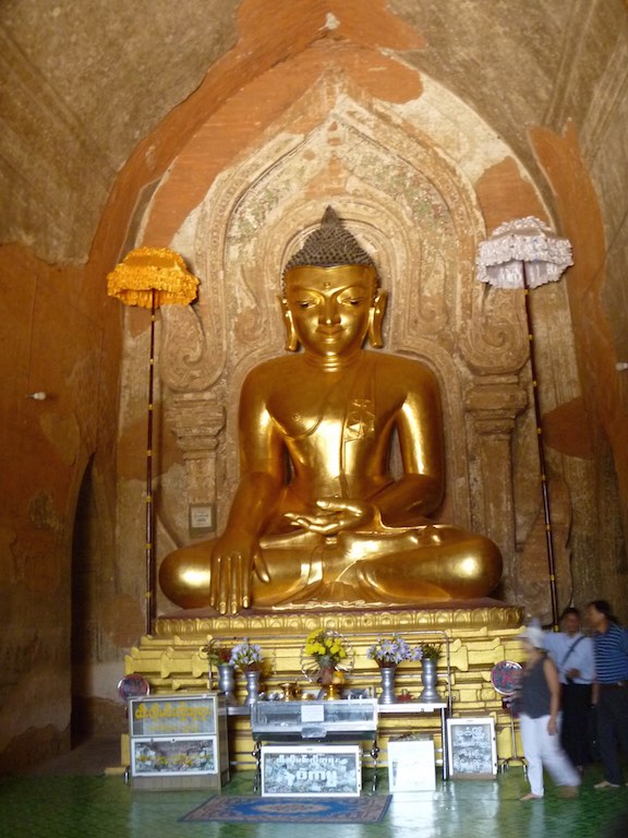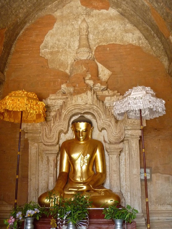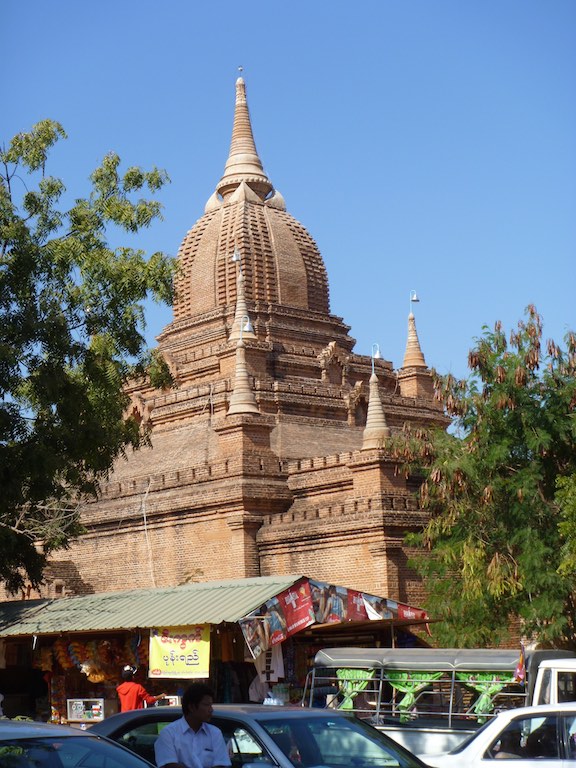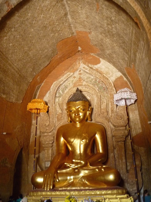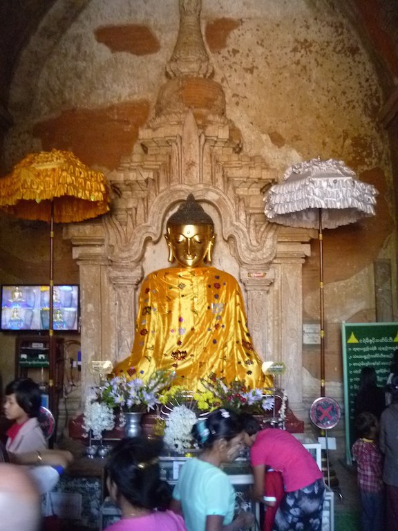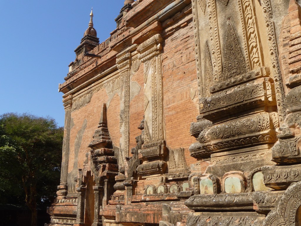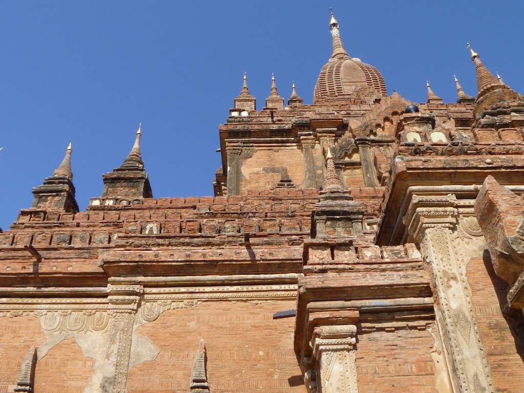 ထီးလိုမင်းလိုဘုရား or Htilominlo Temple was another of the larger temples we visited in Bagan. Built by King Nantaungmya in 1218AD, the temple is known to be the last Myanmar Style temple built in Bagan. The temple is three stories tall and built with red brick. It is known for its elaborate plaster moldings. Like Ananda Temple, there are four Buddhas that face each direction.