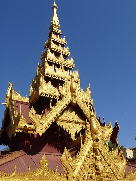 Built in 1076 by King Anawrahta, a recent convert to Theravada Buddhism, Shwezigon was built to enshrine a number of Buddha relics including a replica of the Buddha tooth from Kandy, Sri Lanka. Shwezigon’s bell shape became a prototype for virtually all later pagodas all over Myanmar, and for this reason felt very similar to other sites we visited such as Shwedagon Pagoda in Yangon.