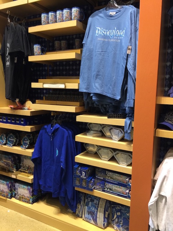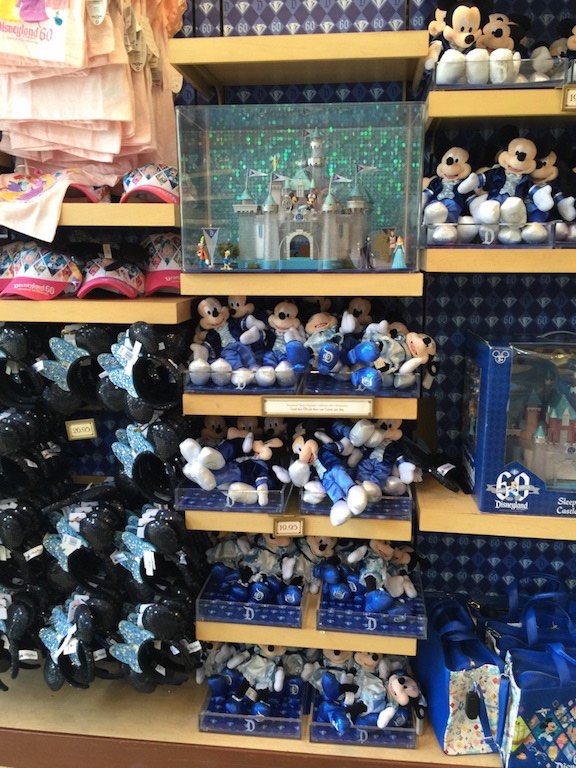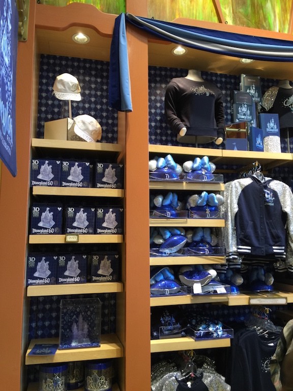 One of the things that many Disney fans were excited about was the new merchandise offerings for the Disneyland 60th celebration.  With the diamond anniversary colour scheme of blue and silver, I was keen to see the available goodies to buy.  I love to shop, but I’m completely rubbish at it, and didn’t buy hardly anything, but I figured others might like to see what items were available.