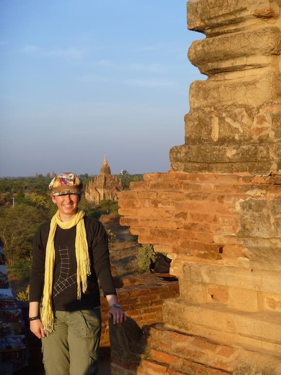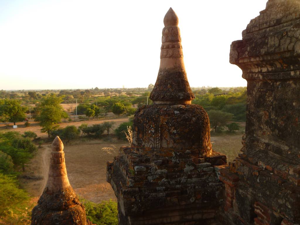 The sun was dropping behind the horizon, and as we stood at the top of our stupa we could see the spires of the distant stupas in the distance. The reds and golds of the sunset glowed against the red brick of the stupas and they were even more beautiful.