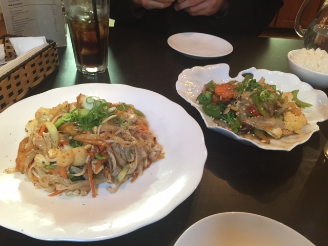 Wednesday night we dined at Saigon Kingdom, a Vietnamese restaurant. Again another spectacular meal. I can’t exactly remember what the dishes were but a Pad Thai type noodle dish (left) and a vegetable something with tofu. Again, plates went back without a grain of rice left.