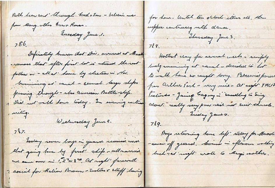 Today seven boys in guard received word that going home by first ship – all married and some over in 1st, 2nd, 3rd. At night farewell social for Matron Brown – sisters and staff leaving for home. Until ten o’clock ??? etc then supper continuing with dance.