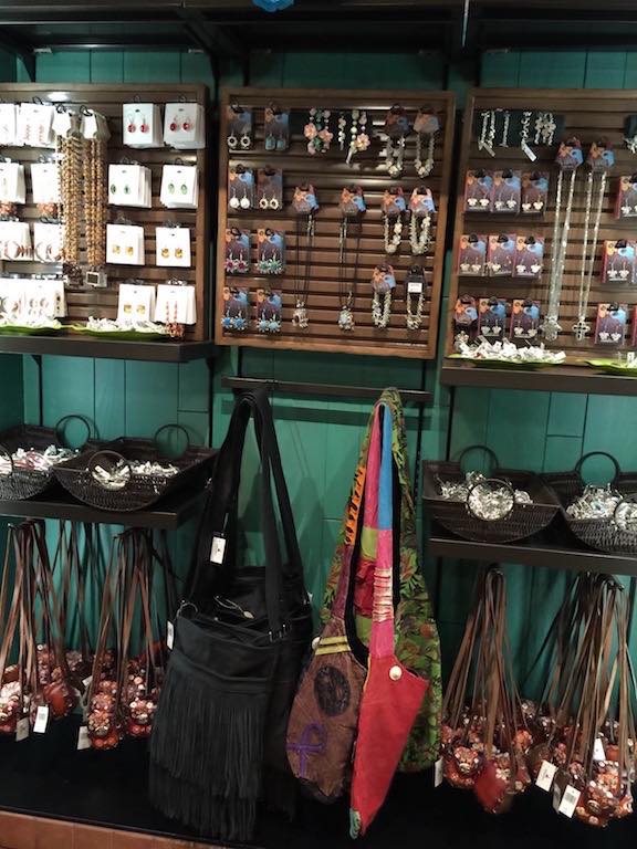Inside the small shop along the side of the plaza you will find bags, jewellery and clothing.