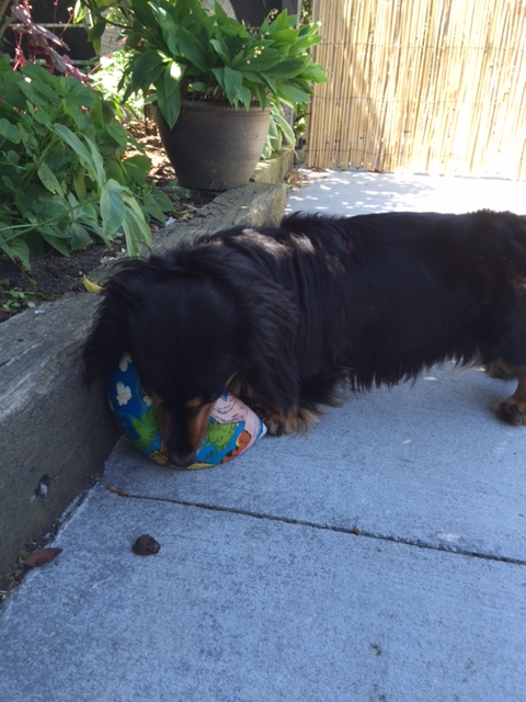 I love what the dog did to a stupid plastic pretty ball. Go dog!