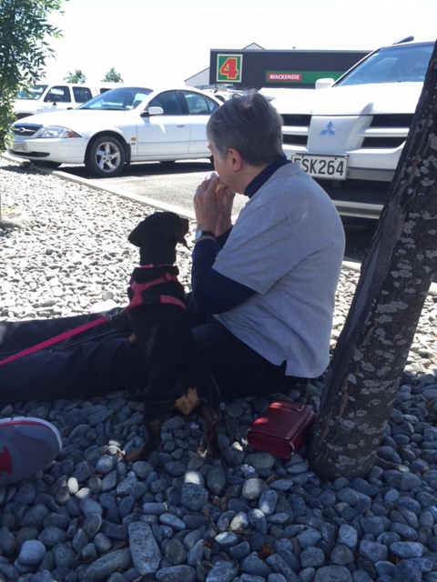 Next stop was Twizel for lunch where doglet #1 tried very hard to convince the human that she shouldn’t eat all of the toasted cheese and onion sandwich.