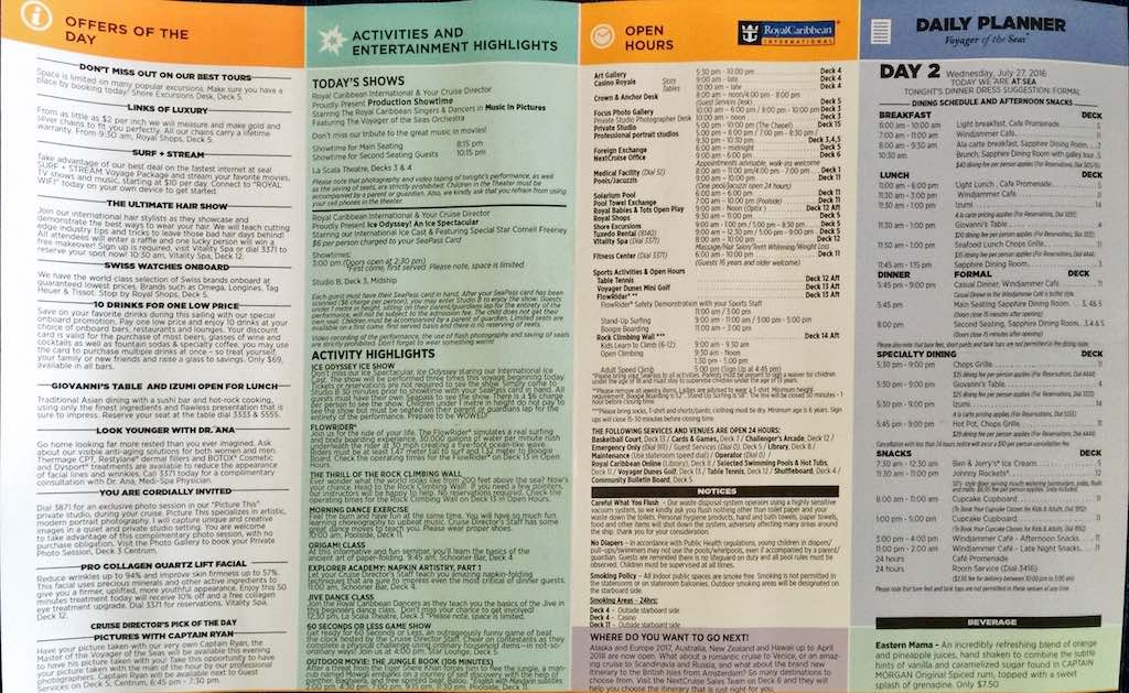 Day 2 was a sea day so there were plenty of activities planned. I’m pretty sure we spent most of the day on the balcony enjoying the downtime with the occassional meal break – hey, we were on a cruise! 😉