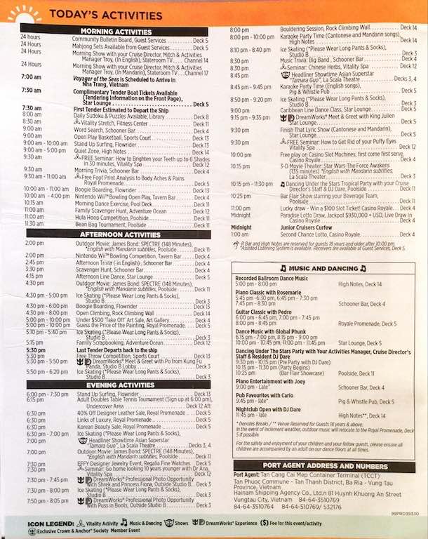 Royal Caribbean – Hong Kong to Vietnam – Cruise Compass – day 3