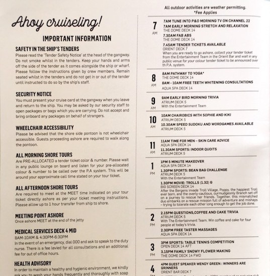 I’ll post the rest of the P&O Goodtimes for this cruise tomorrow.